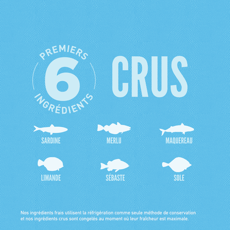 - Les six principaux ingrédients sont crus1, à base de poisson.